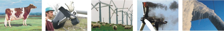프로펠러 풍력발전기에 의한 우유량 감소, 새때의 피해, 소음피해, 화재사고, 겨울철 얼음에 의한 icing